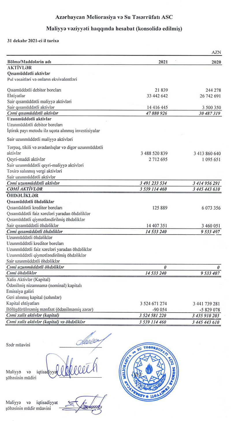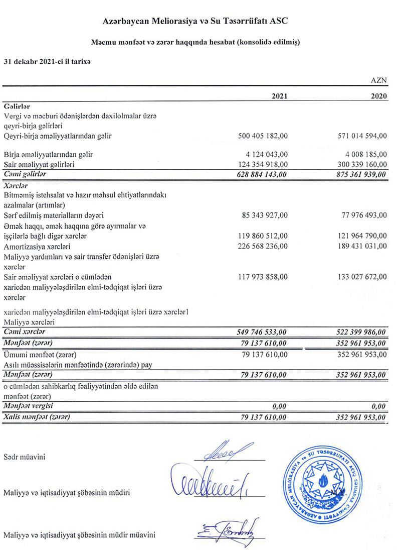 “Azərbaycan Meliorasiya və Su Təsərrüfatı” ASC 2021-ci ili 79 milyon 138 min manat xalis mənfəət ilə başa vurub. ASC 2020-ci ili 352 milyon 962 min manat xalis mənfəət ilə bağlamışdı. Beləliklə, “Azərbaycan Meliorasiya və Su Təsərrüfatı”nın 2021-ci ildə xalis mənfəəti 2020-ci illə müqayisədə 4,5 dəfə azalıb.
