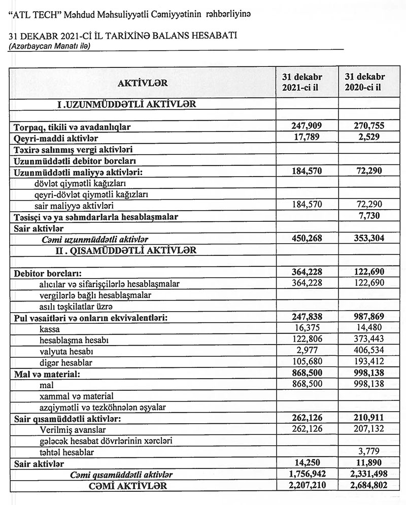 İnsan resursları, əlaqə mərkəzi, süni intellekt və biznesin idarə edilməsi üzrə həllər təqdim edən "ATL Tech" MMC şirkəti 2021-ci ili 296 min manat xalis mənfəət ilə başa vurub. Şirkət 2020-ci ili 298 min manat xalis mənfəət ilə bağlamışdı.
