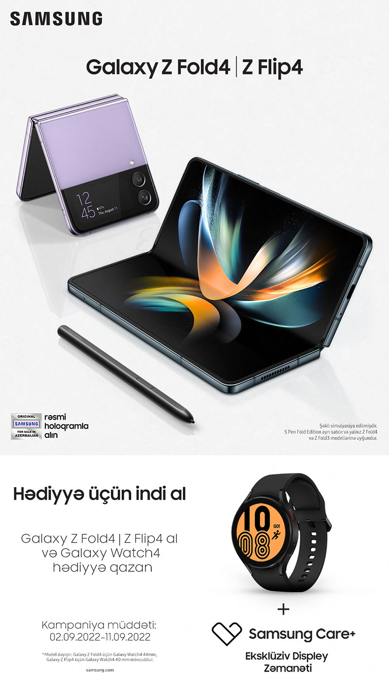 Şirkətdən verilən məlumata görə, avqustun 10-da bütün dünyaya təqdim olunan cihazlara istifadəçilərin marağı gözləntiləri üstələyib və bu səbəbdən sentyabrın 9-dək Azərbaycanda Samsung distribyutor mağazalarının hər hansı birindən yeni cihaz alan hər kəs hədiyyə olaraq Galaxy Watch4 və Samsung Care+ Eksklyüziv Displey Zəmanətini əldə edəcək.