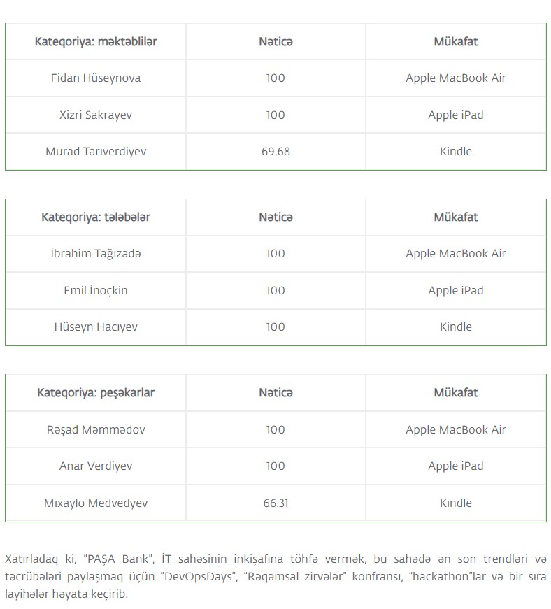 “PASHA Bank Cup IV” yarışmasının qalibləri bəlli olub - SİYAHI