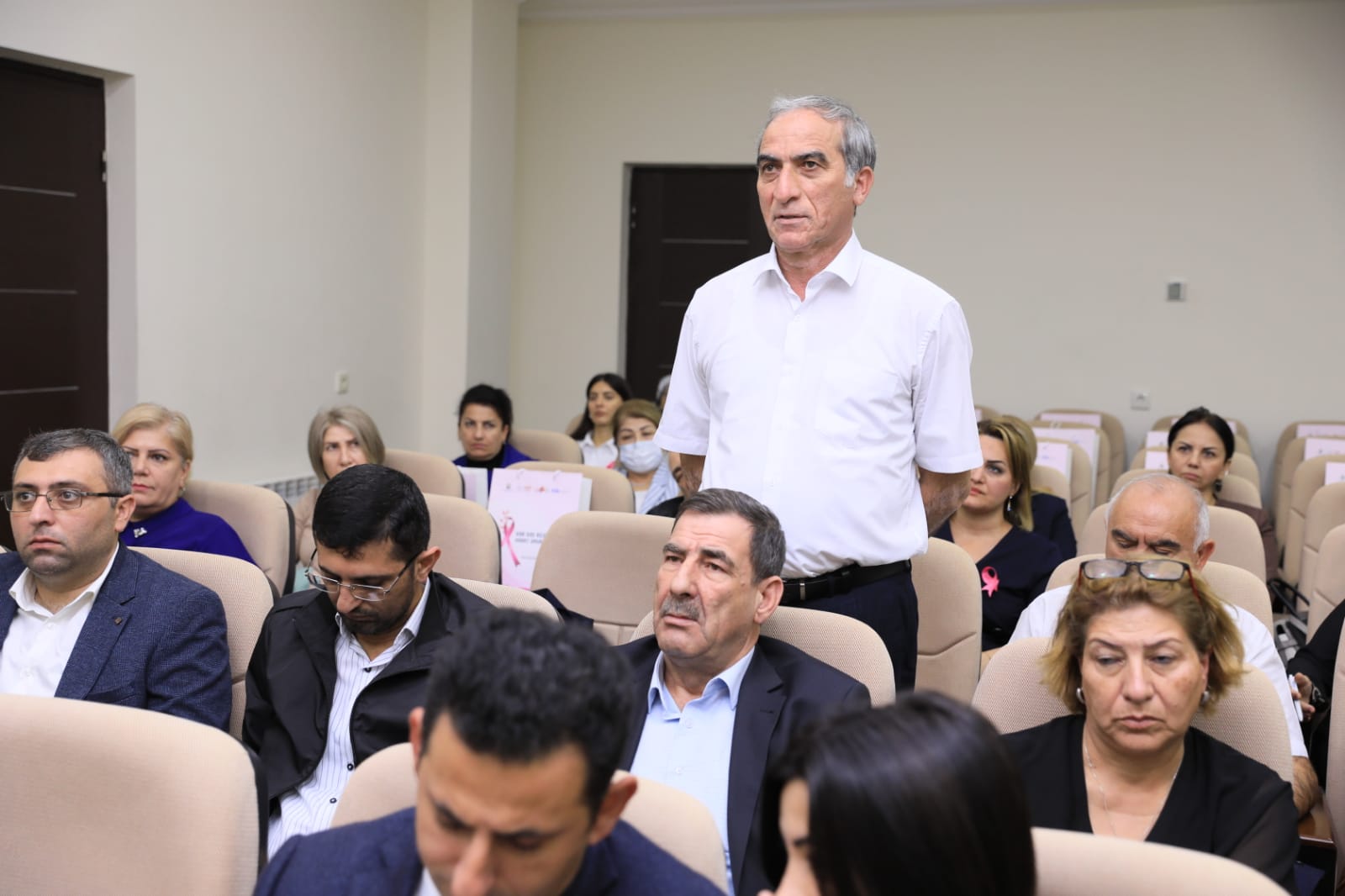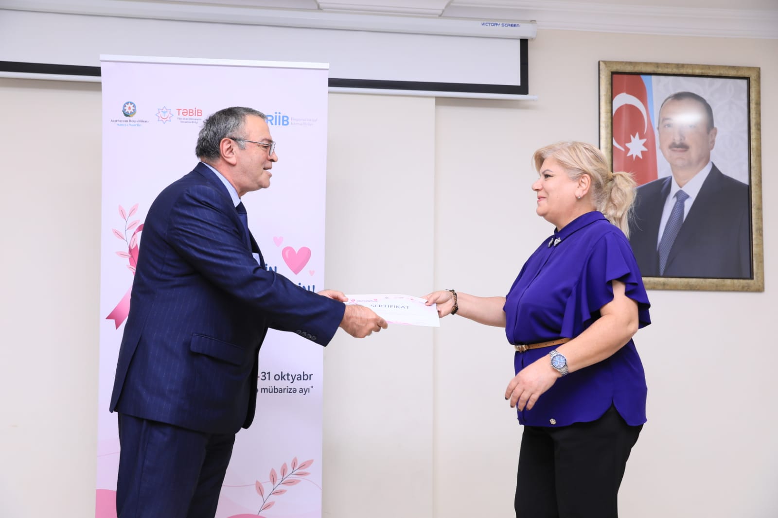 Daha sonra mütəxəssislərin “Süd vəzisi xəstəliklərinə müasir yanaşma”, “Süd vəzisi xərçənginin onkoplastik və rekonstruktiv cərrahiyyəsi”, “Trofoblastik xəstəliklər”, “Süd vəzisi xərçənginin müasir müalicə prinsipləri” və digər mövzularda maraqlı təqdimat və məruzələri dinlənilib. Tədbirin yekununda iştirakçılara sertifikatlar təqdim olunub.