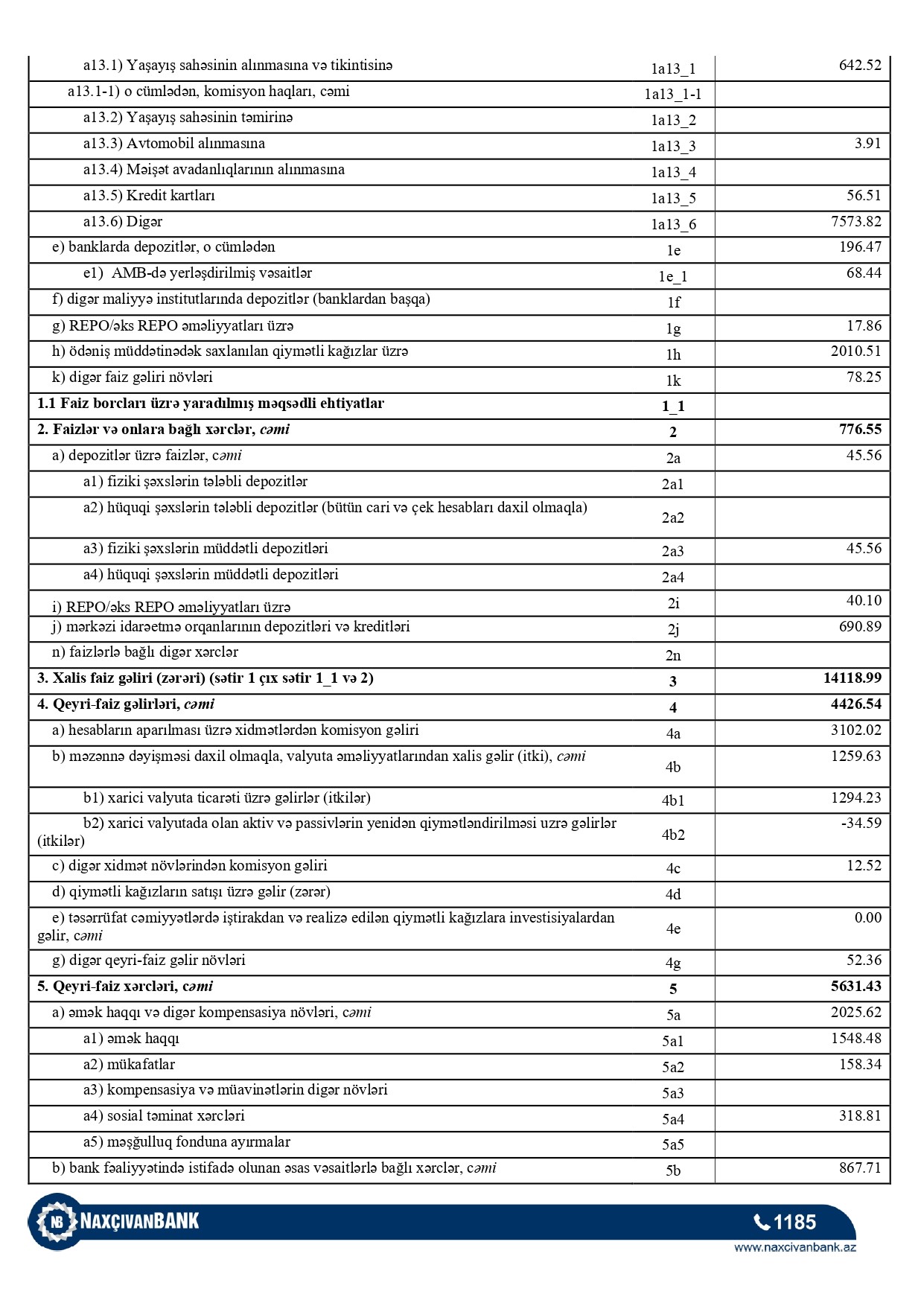 "Naxçıvanbank"ın faiz gəlirləri 2021-ci ilin 9 ayında 9 milyon 804 min manat ikən, 2022-ci ilin 9 ayında 14 milyon 895 min manat təşkil edib. Qeyri-faiz gəlirləri isə 3 milyon 358 min manatdan 4 miylon 426 min manata yüksəlib.