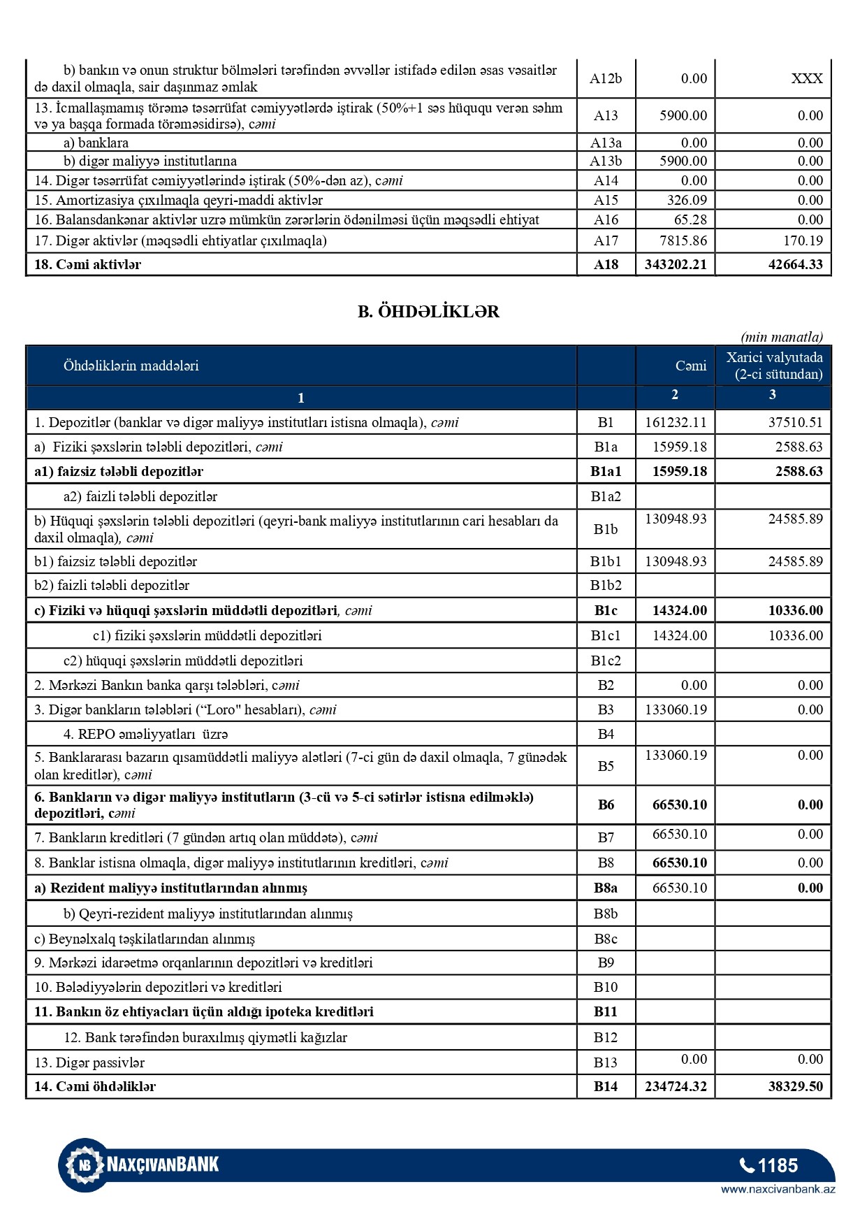 Ötən ilin 30 sentyabr tarixindən 2022-ci ilin eyni tarixinədək ötən müddətdə Bankın depozit portfeli 11 milyon 85 min manat və ya 7,4% artaraq 161 milyon 232 min manata yüksəlib.