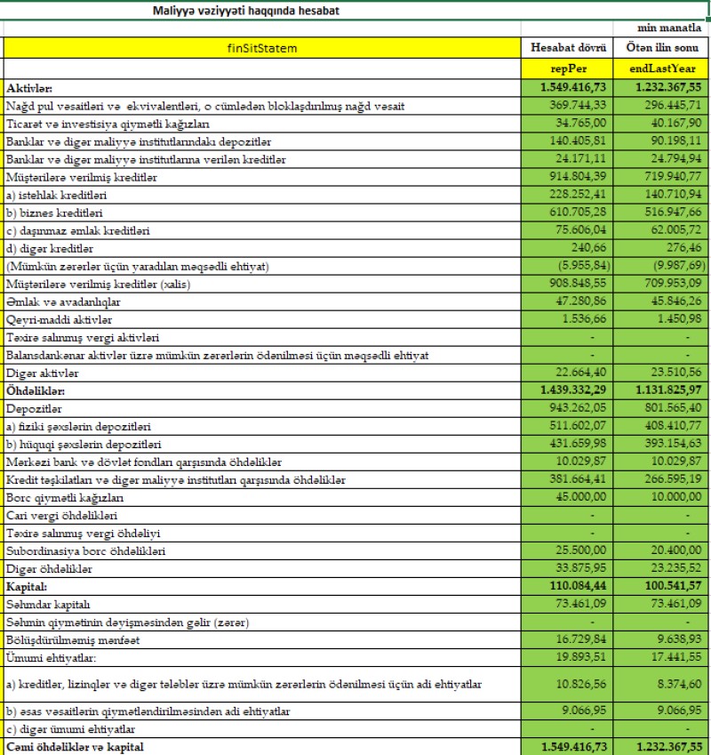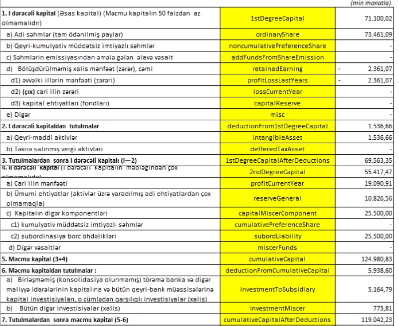 "Açıqlanmış hesabatdan həmçinin görünür ki, Bank dayanıqlı inkişaf üçün kifayət qədər yüksək məbləğdə kapital ehtiyatına malikdir. Belə ki, Bankın məcmu kapitalı 21% artaraq 119,04 milyon manat olmuş və minimum məcmu kapital normasını 2 dəfədən çox üstələmişdir",- press-relizdə bildirilir.