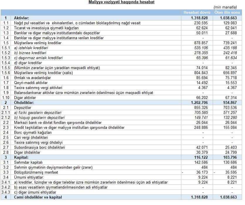 Unibank maliyyə göstəricilərini açıqladı