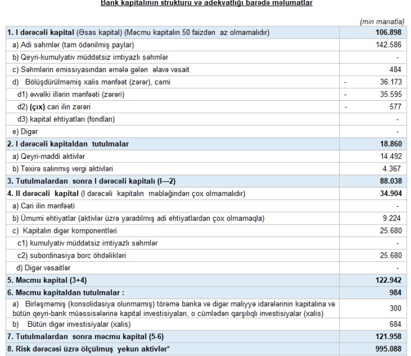 Son illərdə dünyada və qlobal iqtisadiyyatda baş verən hadisələr fonunda Bank əvvəlki kimi kredit risklərinə xüsusi diqqətlə yanaşaraq, ehtiyatların yaradılması ilə bağlı konservativ siyasətini bu il də davam etdirib. Bu məqsədlə il ərzində 19 milyon manat ehtiyatlara ayırmalar edib.