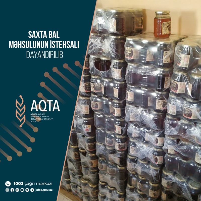 Bal məhsullarının satışının qadağan edilməsi, eləcə də bal məhsulunun istehsalının (emalı və qablaşdırılması) dayandırılması və ticarət şəbəkələrindən geri çağırılması ilə bağlı qərar qəbul olunub.Azərbaycan Qida Təhlükəsizliyi Agentliyi (AQTA) saxta bal məhsulunun istehsalını dayandırıb.