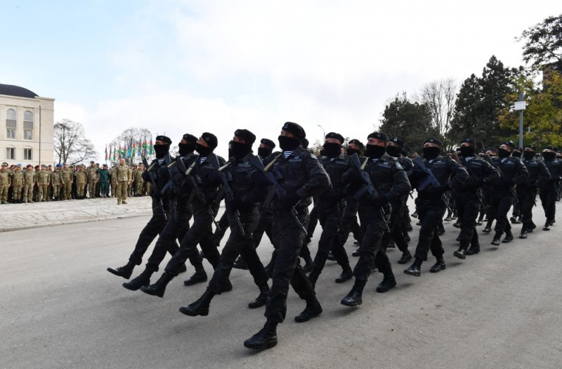 Sonda hərbi qulluqçuların təntənəli keçidi oldu.