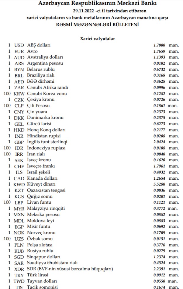 Dolların bazar ertəsi üçün rəsmi məzənnəsi müəyyən olunub