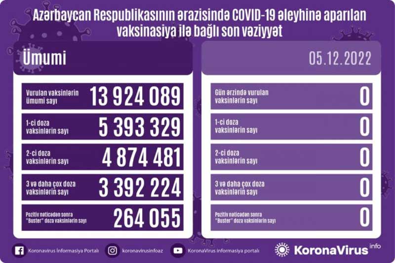 Azərbaycanda son sutkada koronavirus (COVID-19) əleyhinə vaksin vurulmayıb.