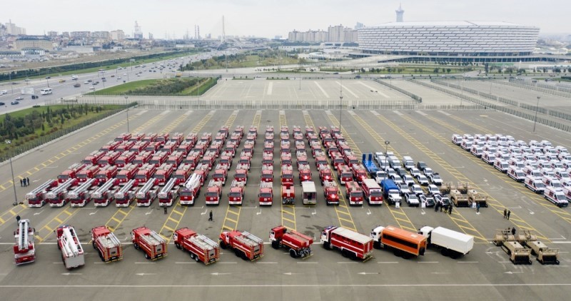 Dekabrın 9-da Azərbaycan Respublikasının Prezidenti İlham Əliyev Fövqəladə Hallar Nazirliyi (FHN) tərəfindən alınmış və işğaldan azad olunmuş ərazilərdə istifadə ediləcək xüsusi təyinatlı texnikalar və İcbari Tibbi Sığorta üzrə Dövlət Agentliyi tərəfindən alınmış müasir təcili tibbi yardım avtomobilləri ilə tanış olub.