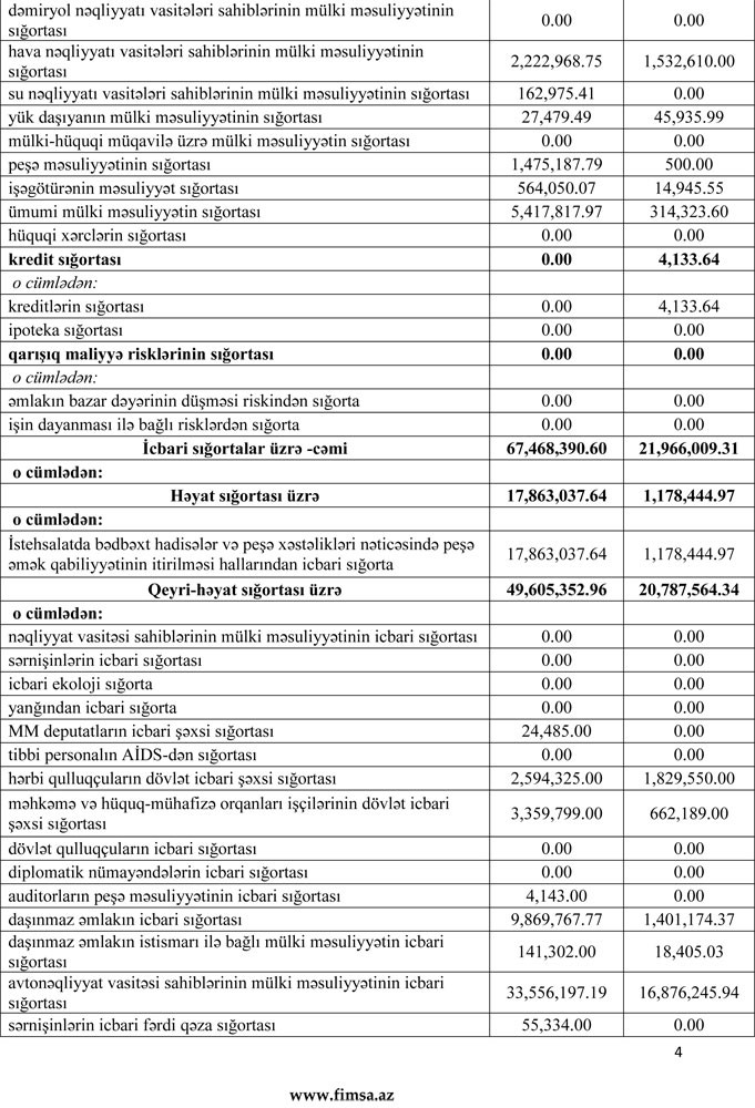4 şirkətin (Azsığorta, Xalq Sığorta, Standard İnsurance, Rəvan Sığorta, Başak-İnam) hesabladıqları sığorta haqları kəskin azalıb.