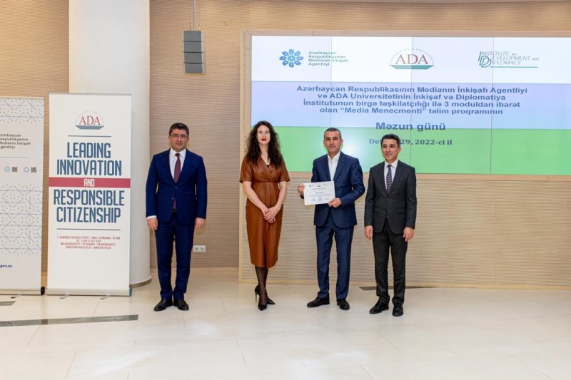 Azərbaycan Respublikasının Medianın İnkişafı Agentliyi və ADA Universitetinin İnkişaf və Diplomatiya İnstitutunun birgə təşkilatçılığı ilə 3 moduldan ibarət olan “Media Menecmenti” təlim proqramının üçüncü modulu keçirilib.