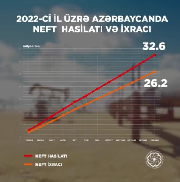 2022-ci ildə operativ məlumatlara görə, Azərbaycanda hasil edilmiş 32,6 mln. ton neftin 26,3 mln. tonu (və ya 80,7%-i) ixraca nəql edilib.