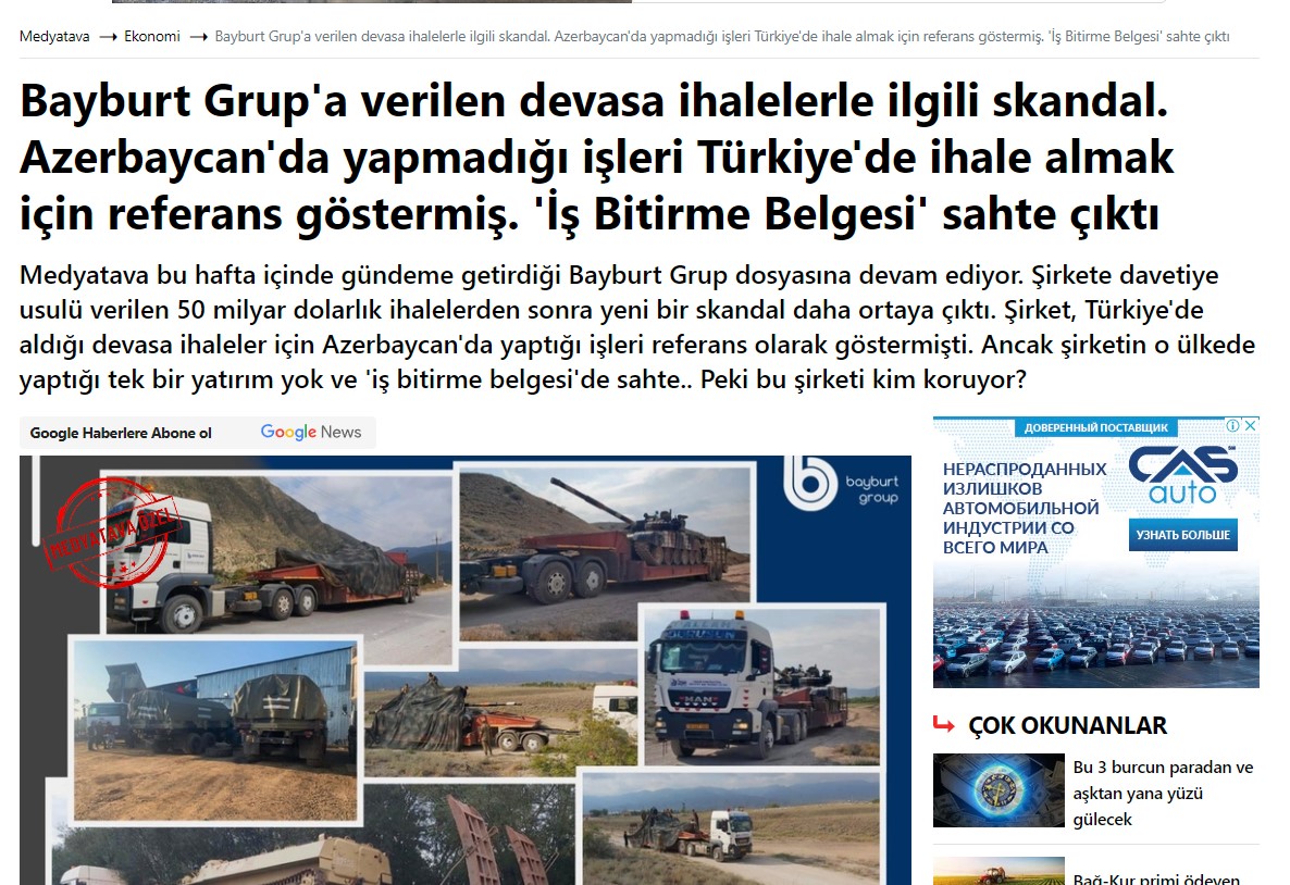 Marja.az Türkiyə mətbuatı (Medyatava) iddia edir ki, şirkət, Türkiyədə tenderdə qalib gəlmək üçün Azərbaycanda görmədiyi işləri göstərib. Halbuki, "Bayburt" şirkətin Azərbaycanda sərmayəsi yoxdur və Türkiyədə tenderləri udmaq üçün istinad etdiyi “işin təhvil verilməsi arayışı” saxtadır.