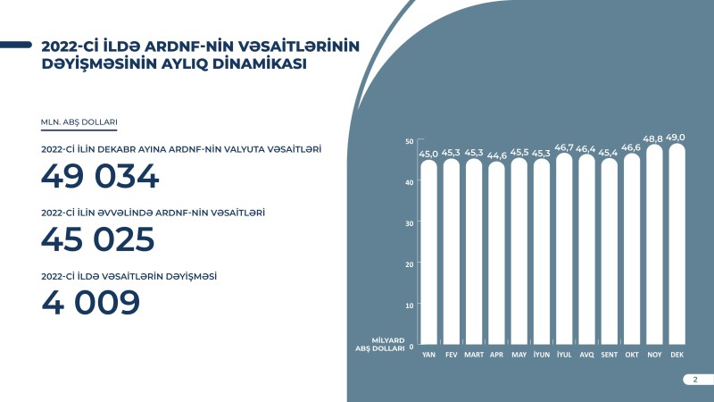 2022-ci ilin əvvəlində ARDNF 45 milyard 25,1 milyon ABŞ dolları aktivlərə malik idi.