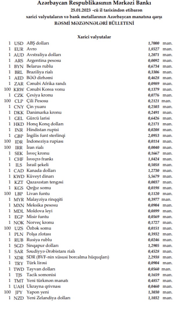 Dolların bazar ertəsi üçün rəsmi məzənnəsi müəyyən olunub