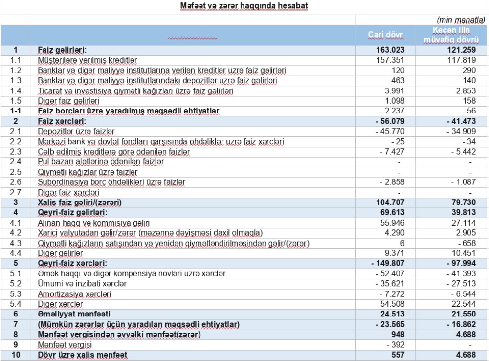 Aktivlərinin məbləğinə görə 6-cı böyük bank olan "Unibank"ın 24 milyon 513 min manat əməliyyat mənfəətindən 23 milyon 565 manat ümkün zərərlər üçün yaradılan ehtiyatlara ayırdığı və 392 min manat mənfəət vergisi ödədiyi üçün ötən ili 557 min manat xalis mənfəət ilə bağlayıb.
