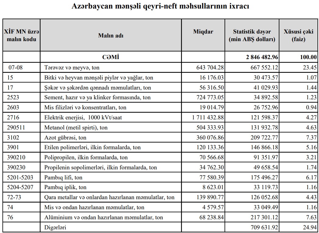 Azərbaycanın ən çox ixrac və idxal etdiyi mallar - YENİ SİYAHI