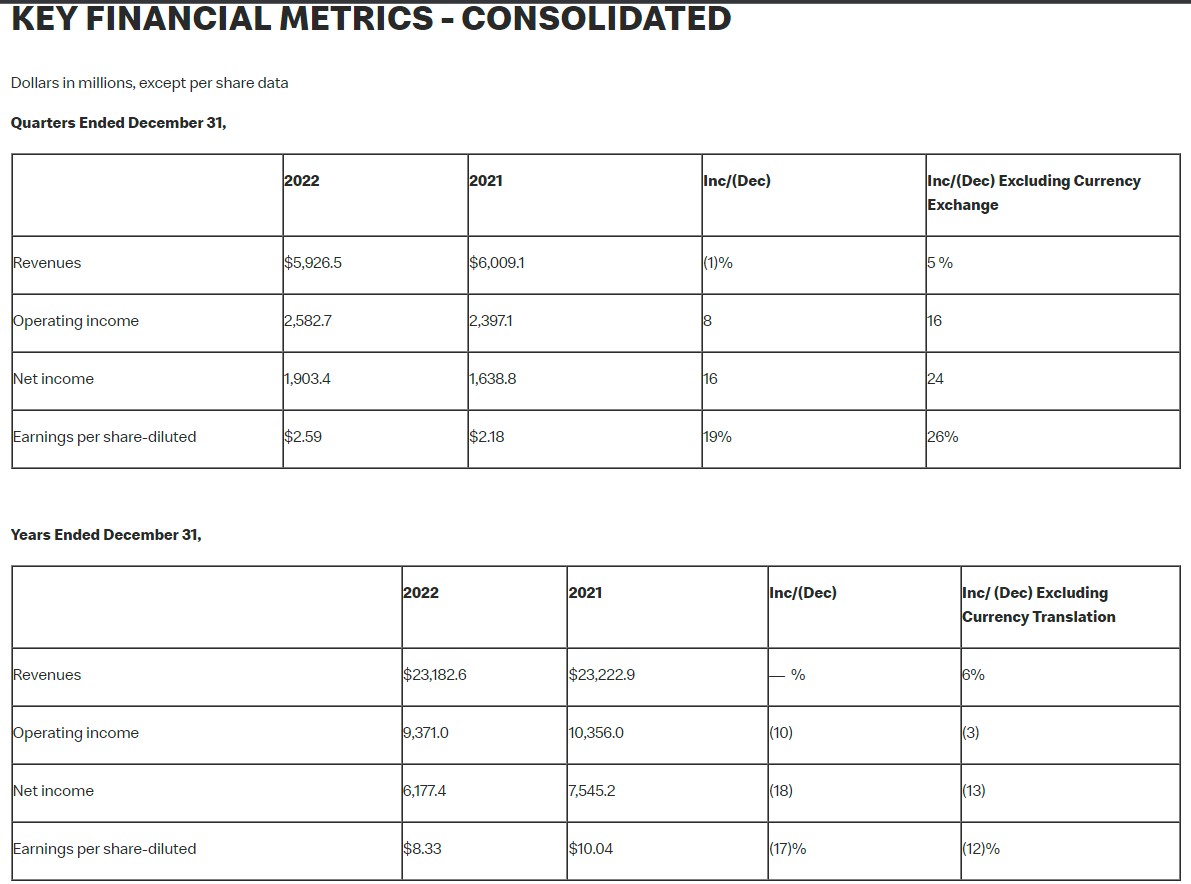 McDonald's-ın ötən il ərzində cəmi gəlirləri (satış) 2021-ci illə müqayisədə 1%-dən az azalaraq 23 milyard 182 milyon dollar təşkil edib.