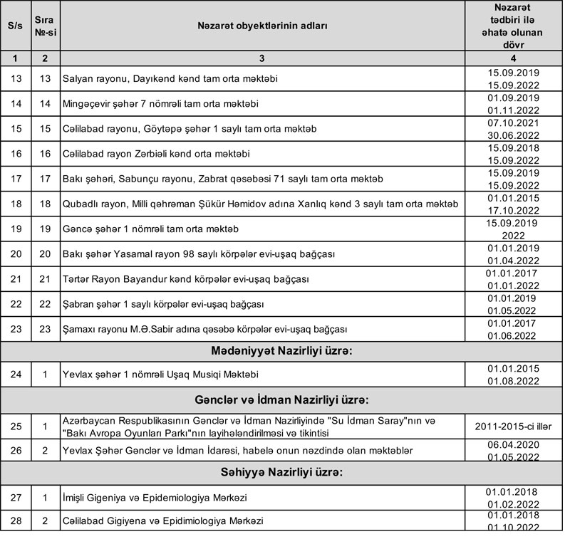 Qeyd edilib ki, Dövlət Maliyyə Nəzarəti Xidmətinin mərkəzi aparatı və onun regional maliyyə müfəttişlikləri tərəfindən iş planlarına əsasən 2022-ci ildə 71 təşkilatda aparılmış yoxlamalarla aşkar olunan 5 milyon 81,1 min manat məbləğində artıq və əsassız ödənişlərin 1 milyon 747,7 min manat hissəsinin yoxlamaların gedişində və yoxlamalardan sonrakı dövrdə təqsirkar şəxslər tərəfindən dövlət büdcəsinə ödənilərək bərpası təmin edilib, həmin nəzarət obyektlərindən 2 təşkilat üzrə aşkar olunan 2 milyon 811,4 min manat məbləğində nöqsanlara hüquqi qiymət verilməsi üçün yoxlama materialları Dövlət Təhlükəsizliyi Xidmətinə göndərilib.
