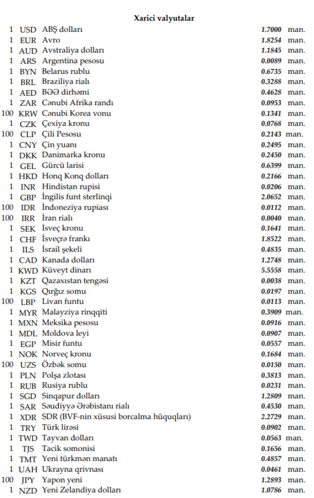 Dolların bazar ertəsi üçün rəsmi məzənnəsi müəyyən olunub