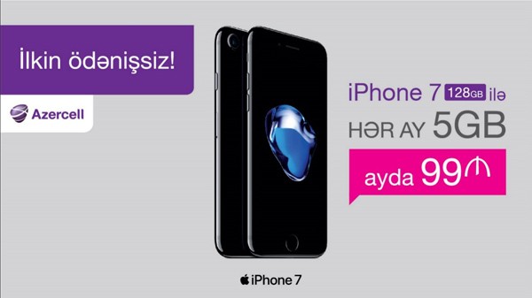 Belə ki, 11.07.2017-ci il tarixindən etibarən yeni kampaniya çərçivəsində abunəçilər iPhone 7 128GB və iPhone 6S Plus 32GB kimi 4G-dəstəkli smartfonlarını aylıq uyğun olaraq cəmi 99AZN və 85AZN-dən başlayan ödənişlə əldə edə bilərlər.