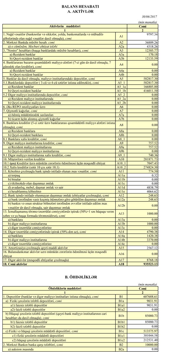 31 İyun 2017-ci il tarixində “Azərbaycan Sənaye Bankı” nın cəmi aktivləri 935 milyon 523 min manat, cəmi öhdəlikləri 846 milyon 599 min manat, cəmi kapitalı isə 88 milyon 923 min manat təşkil edib. Ötən ilin sonunda Bank 787 milyon 179 min manat cəmi aktivlərə, 702 milyon 525 min manat cəmi öhdəliklərə və 84 milyon 653 min manat cəmi kapitala malik idi.