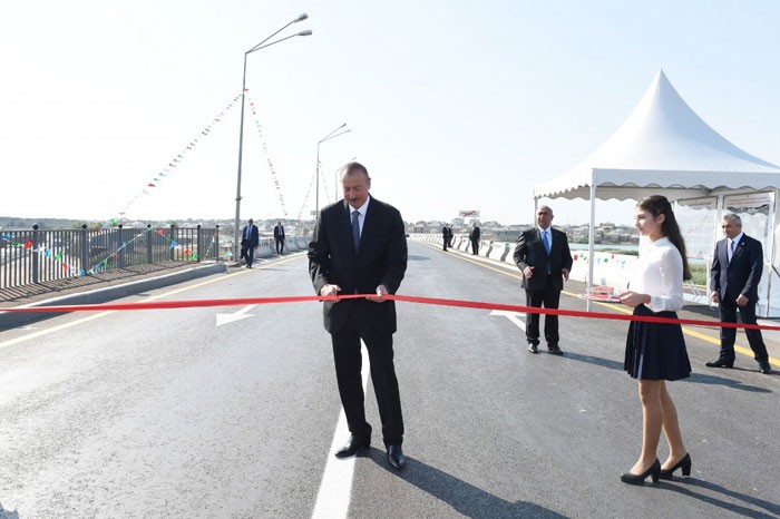 Dövlətimizin başçısı yeni yolun rəmzi açılışını bildirən lenti kəsdi.