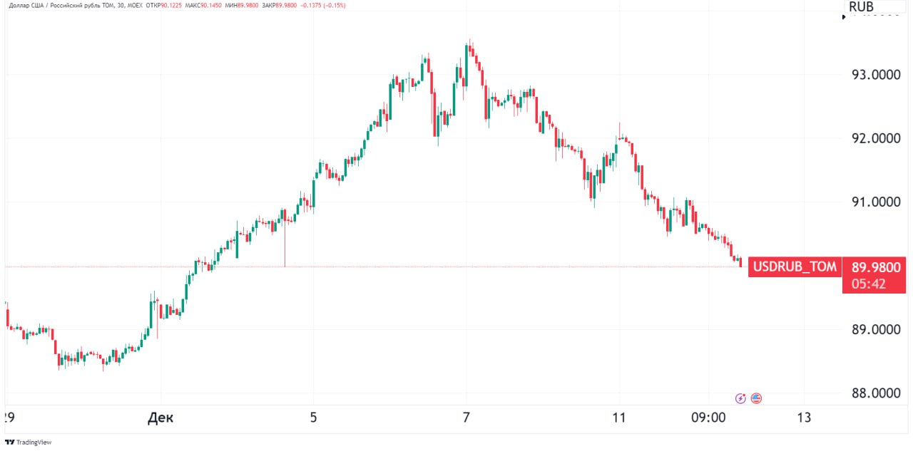 Dolların məzənnəsi yenidən 90 rubldan aşağı düşüb