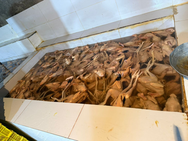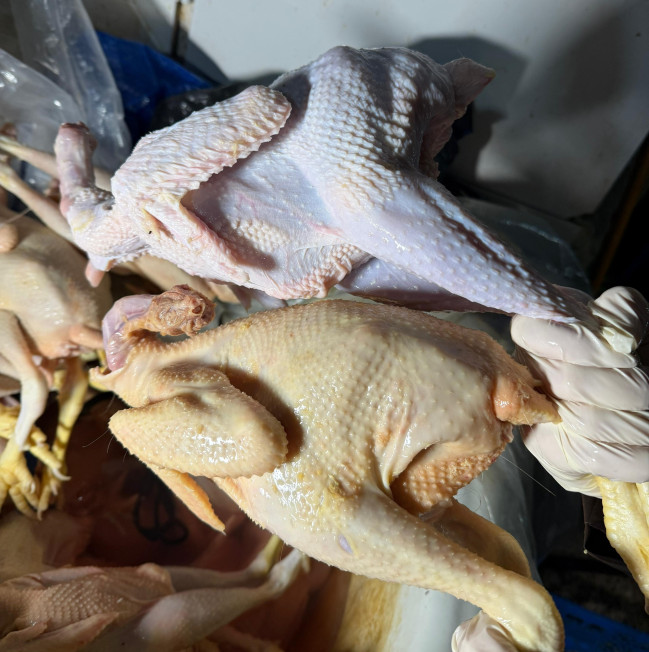 Belə ki, yoxlama zamanı baytarlıq-müşayiətedici sənədləri olmayan 2000 baş ev quşunun baytarlıq tələbləri və heyvan rifahı gözlənilmədən kəsiminin həyata keçirildiyi məlum olub. Müəssisə daxilində havalandırma sistemlərinin quraşdırılmaması nəticəsində kondensasiya prosesi zamanı yaranmış suların, o cümlədən yağış sularının tavandan birbaşa qida məhsullarının üzərinə töküldüyü, kəsim prosesində sanitar-gigiyenik tələblərə riayət edilmədiyi, tüklərin təmizlənməsi, pörtlədilməsi, içalatın təmizlənməsinin eyni sahədə həyata keçirildiyi, kəsilmiş toyuqların birbaşa döşəmə üzərinə yığıldığı müəyyən edilib. Eyni zamanda "kənd toyuğu" təəssüratı yaratmaq məqsədilə mənşəyi məlum olmayan rənglərdən istifadə edilərək toyuqların rənglənməsi halları da aşkarlanıb. Sahibkar ev quşlarının bazarlarda satışa çıxarıldığını bildirib.