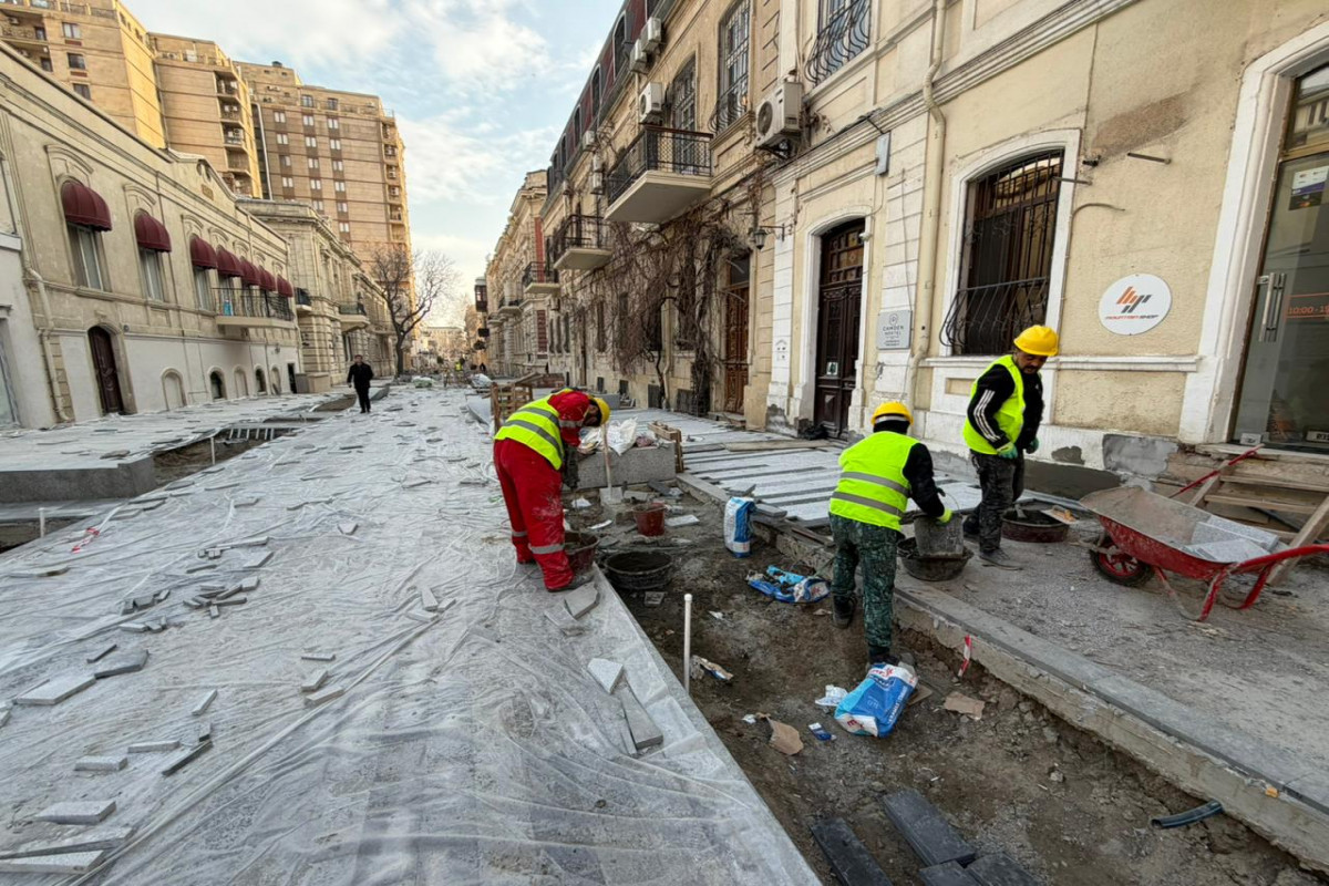 Küçənin böyük hissəsində daş döşəmələrin salınması işləri yekunlaşıb. Ayrı-ayrı hissələrdə artıq skamyalar quraşdırılıb, ümumi görünüş mərhələli şəkildə müasir piyada məkanına uyğunlaşdırılır. Bu işlər 1 kilometrdan çox ərazini əhatə edir.
