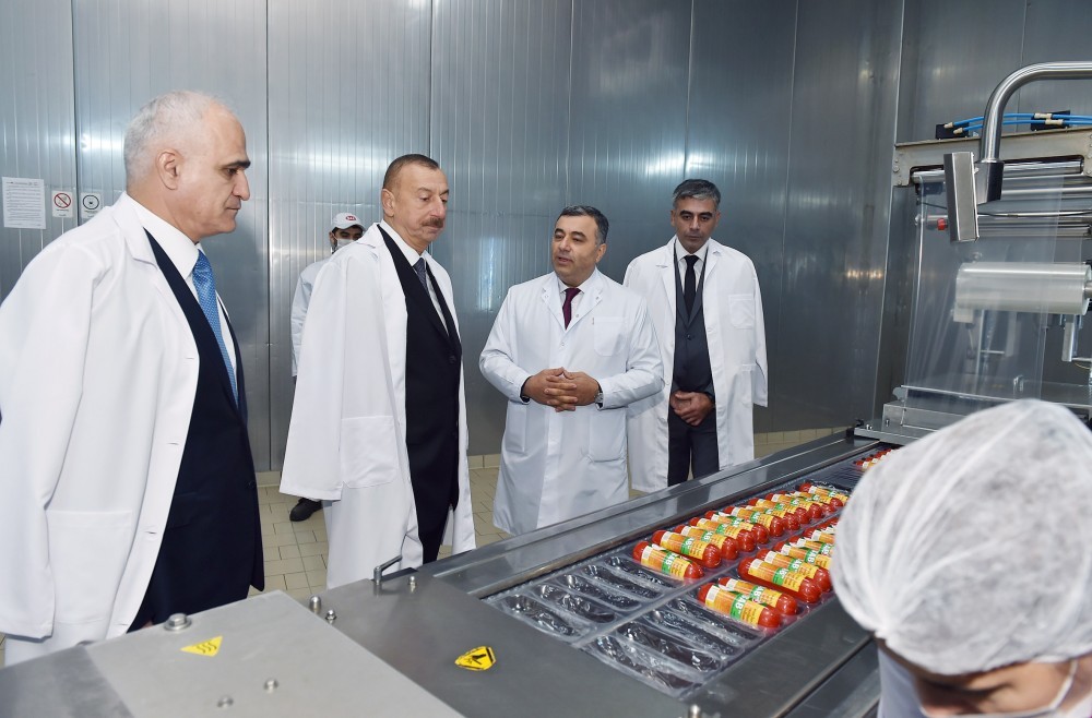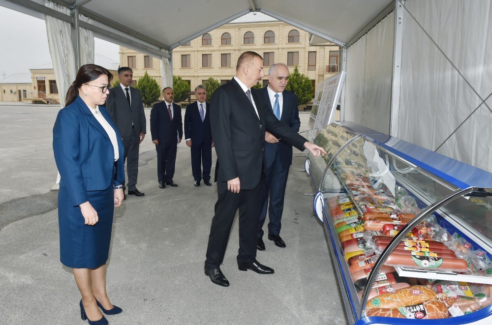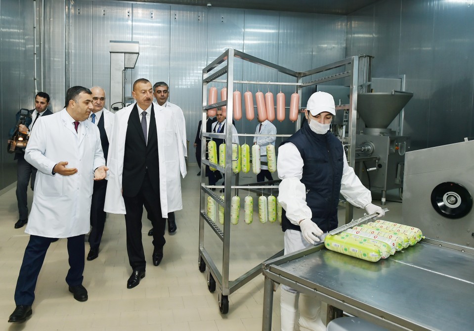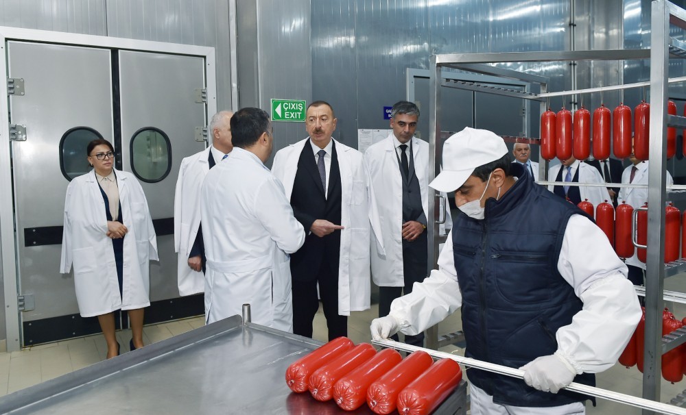 Prezident kolbasa istehsalçısının məhsulları ilə tanış oldu - FOTOLAR