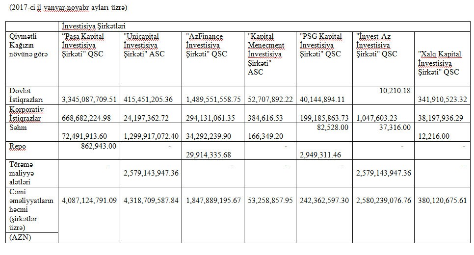Növbəti yerlərdə “Paşa Kapital”, "İnvest-Az, "AzFinance”, "Xalq Kapital”, PSG Kapital” və "Kapital Menecment” gəlir.
