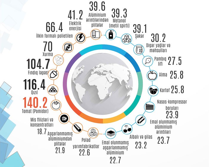 2017-ci ilin 11 ayı ərzində ixrac olunan qeyri-neft sektoru məhsulları arasında pomidor (tomat) birinciliyini qoruyub (140.2 milyon ABŞ dolları).