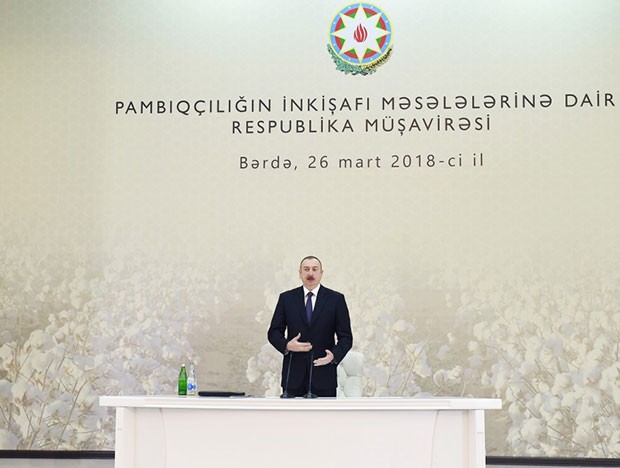 Martın 26-da Azərbaycan Respublikasının Prezidenti İlham Əliyevin sədrliyi ilə Bərdədəki Mədəniyyət Mərkəzində pambıqçılığın inkişafı məsələlərinə dair respublika müşavirəsi keçirilib.