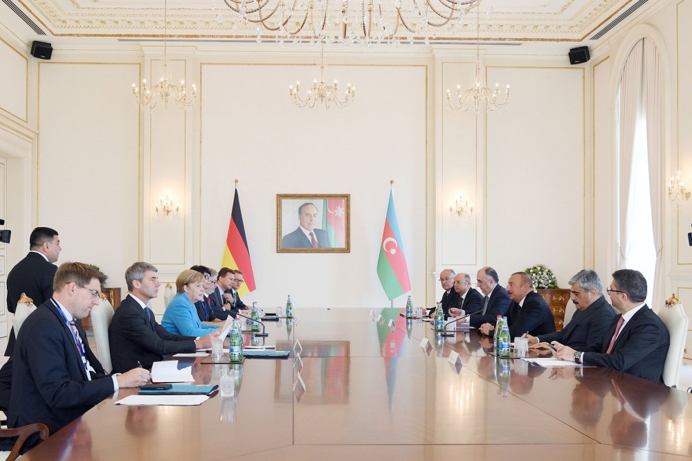 Avqustun 25-də rəsmi qarşılanma mərasimi başa çatandan sonra Azərbaycan Respublikasının Prezidenti İlham Əliyevin və Almaniya Federativ Respublikasının Federal Kansleri xanım Angela Merkelin nümayəndə heyətlərinin iştirakı ilə geniş tərkibdə görüşü keçirilib.