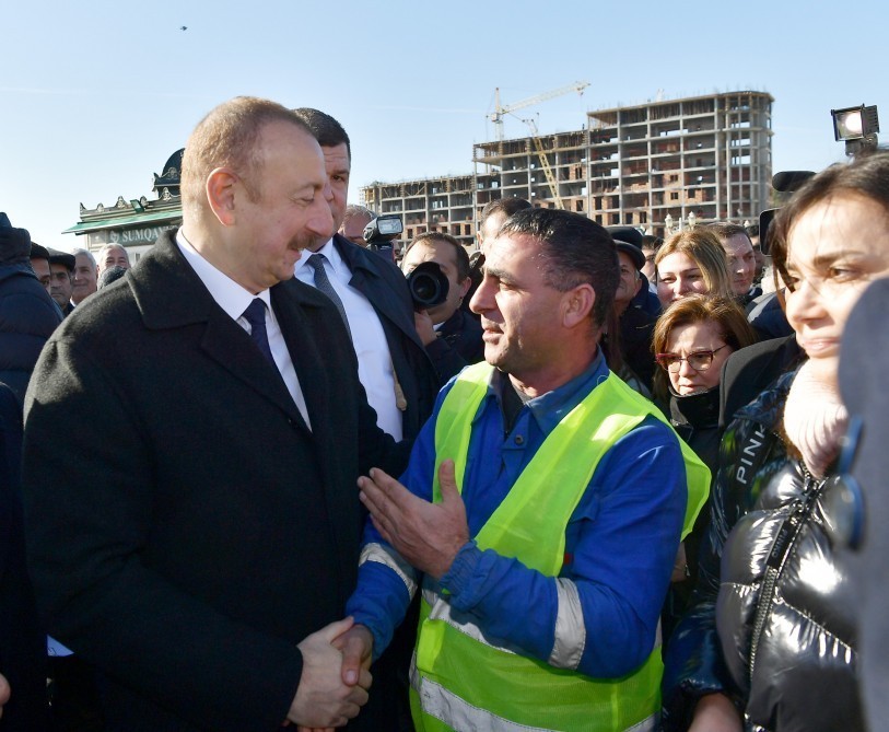 Dənizkənarı bulvarda Sumqayıt sakinləri dövlət başçısına yaxınlaşaraq söhbət ediblər.