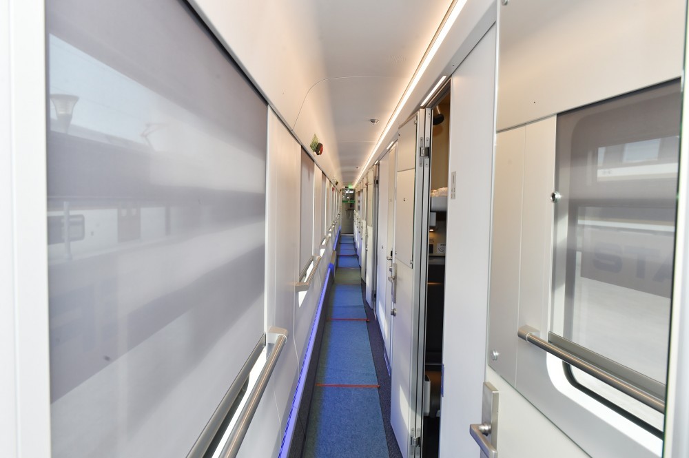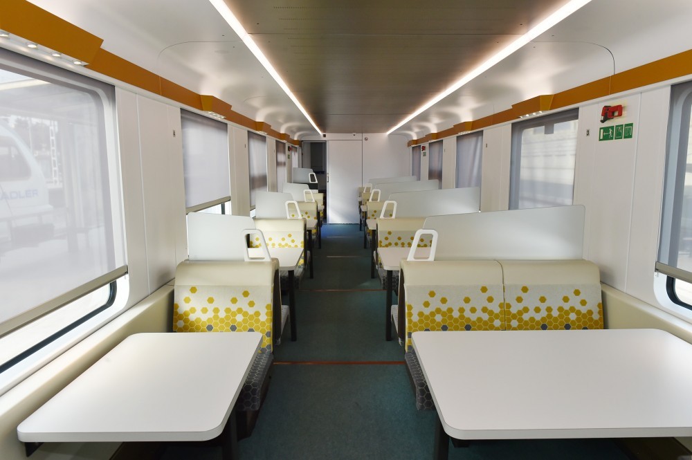 “Azərbaycan Dəmir Yolları” Qapalı Səhmdar Cəmiyyətinin sədri Cavid Qurbanov bildirdi ki, “Azərbaycan Dəmir Yolları” QSC-nin sifarişi ilə İsveçrənin “Stadler Rail Group” şirkəti tərəfindən istehsal olunan 10 vaqondan ibarət sərnişin qatarı Türkiyə və Gürcüstandan keçməklə martın 29-da Bakıya çatıb. Amma bundan əvvəl qatar Axalkalakidə quraşdırılmış xüsusi qurğuda test rejimində sınaqdan keçirilib. Qatarların Türkiyədə hərəkəti üçün Gürcüstan-Türkiyə-Gürcüstan sərhəd-keçid məntəqəsində vaqonda təkər cütlərinin eninə bazasının avtomatik olaraq 1520 millimetrdən 1435 millimetrə və əksinə dəyişdirilməsini nəzərdə tutan yeni qurğu quraşdırılıb. Qatarda doqquz sərnişin vaqonu və bir restoran var. Vaqonlar “standart”, “komfort”, “biznes” və “restoran” olmaqla dörd kateqoriyada istehsal edilib. Kateqoriyasından asılı olaraq, vaqonlar 10, 20 və 32 nəfərlikdir. Ümumilikdə qatarda bir istiqamətə 246 yer nəzərdə tutulub. Saatda 160 kilometr sürətlə hərəkət etmək imkanına malik qatardakı arabacıqlar pnevmatik asılqanla təmin edilib ki, bu da döngələrdə vaqonun tarazlığını tənzimləyir. Bundan başqa, hər bir vaqon dizel generatoru avadanlığı ilə təmin olunub. Bu da lokomotivdə cərəyan olmadıqda vaqonu və ondakı bütün elektrik enerjisi istifadəçilərini 24 saat fasiləsiz elektrik enerjisi ilə təmin edəcək.