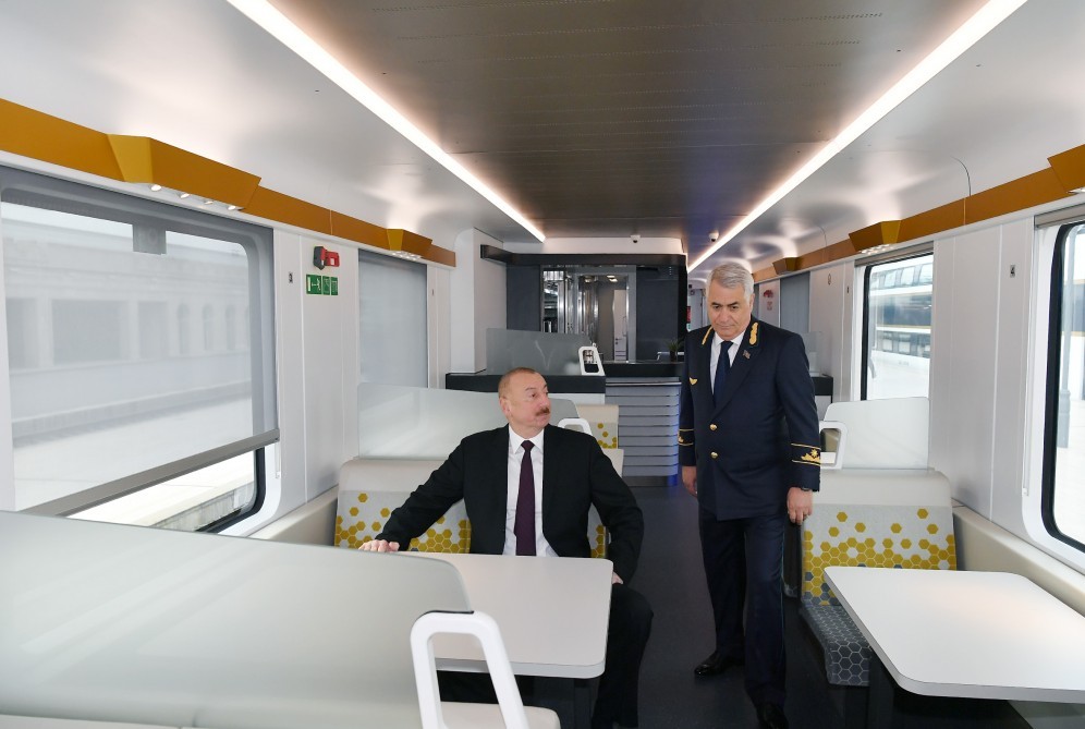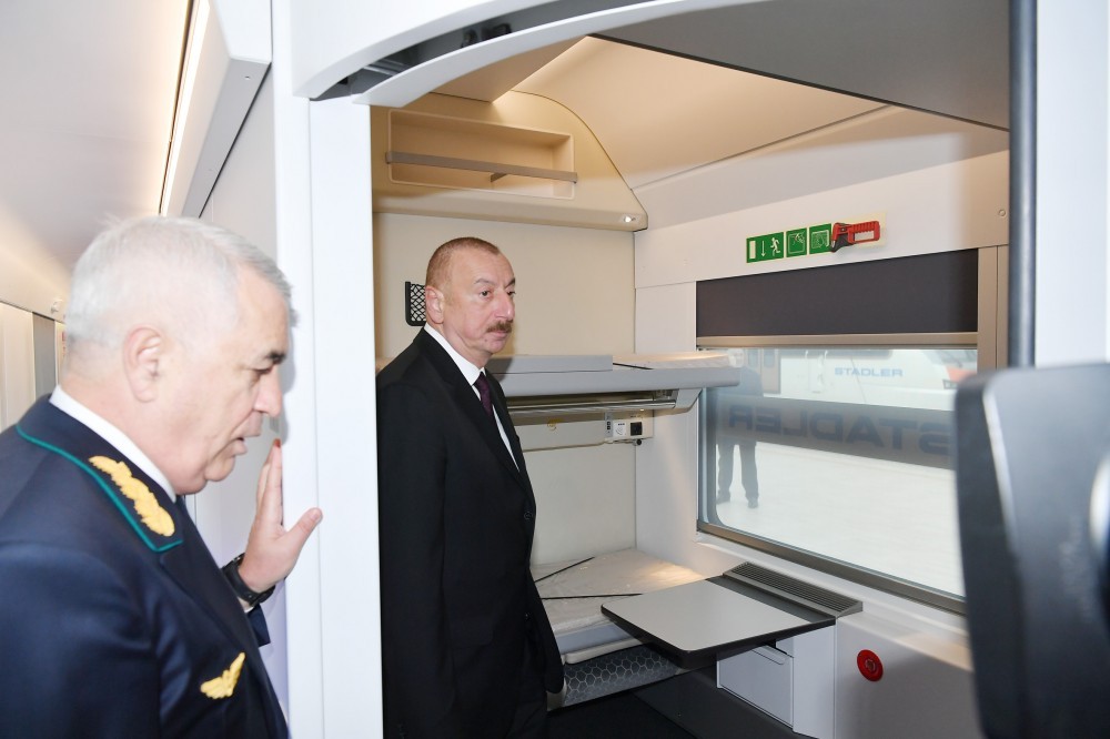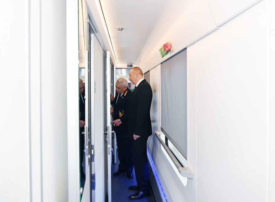 Prezident Bakı-Tbilisi-Qars yolunda hərəkət edəcək sərnişin qatarı ilə tanış oldu - FOTOLAR
