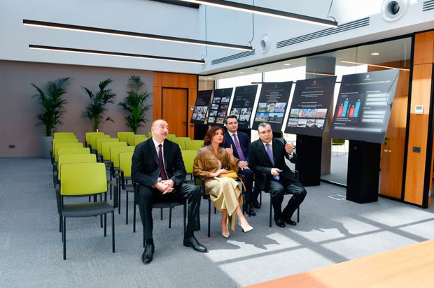 Prezident İlham Əliyev və birinci xanım Mehriban Əliyeva binada yaradılan şəraitlə yaxından tanış oldular.