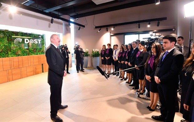 - Əziz dostlar, bu gün ölkəmizin həyatında çox əlamətdar bir gündür. İlk DOST mərkəzi açılır, fəaliyyətə başlayır. Bu münasibətlə sizi ürəkdən təbrik edirəm. Keçən ilin avqust ayında mənim Sərəncamımla DOST Agentliyi yaradıldı və şadam ki, qısa müddət ərzində, heç bir il keçməmiş birinci mərkəz artıq fəaliyyətə başlayır. Bildiyiniz kimi, Bakıda, bütün bölgələrdə bütövlükdə 31 mərkəz yaradılacaq. Vətəndaşlara yüksək xidmət göstərmək üçün burada bütün şərait, bütün imkanlar var. Bina çox gözəldir, müasirdir, həm xarici görünüşü, həm də dizayn-tərtibat baxımından. Bu, bir daha onu göstərir ki, sosial sahə bizim üçün prioritet sahədir. Hər mərkəzdə təqribən 100-150 iş yeri olacaq, bu da çox önəmlidir. Hər bir mərkəzdə könüllülər qrupu fəaliyyət göstərəcək. Beləliklə, bu mərkəzlər vətəndaşlara yüksəksəviyyəli xidmət etmək üçün gözəl şərait yaradacaqdır.