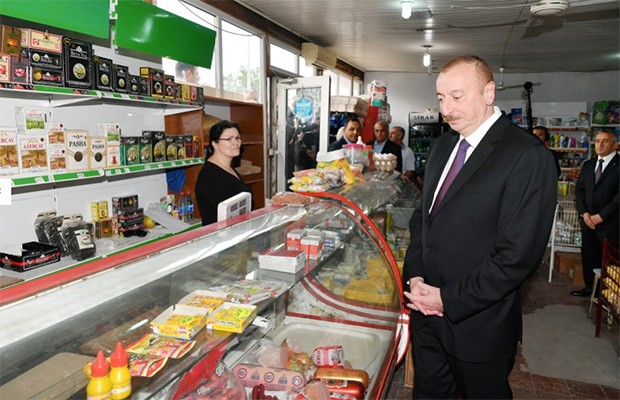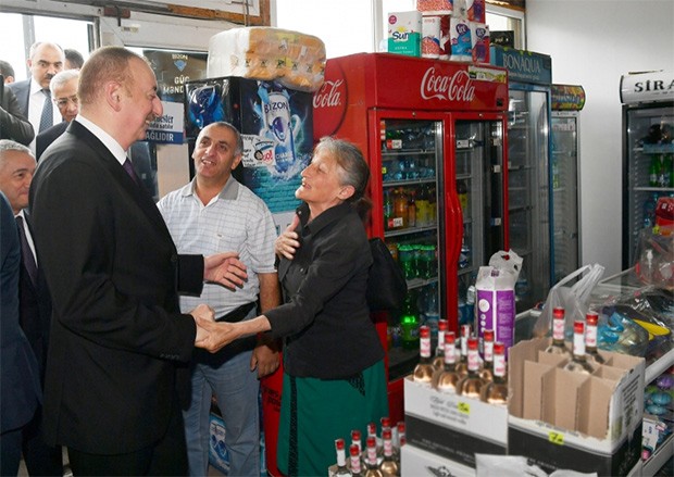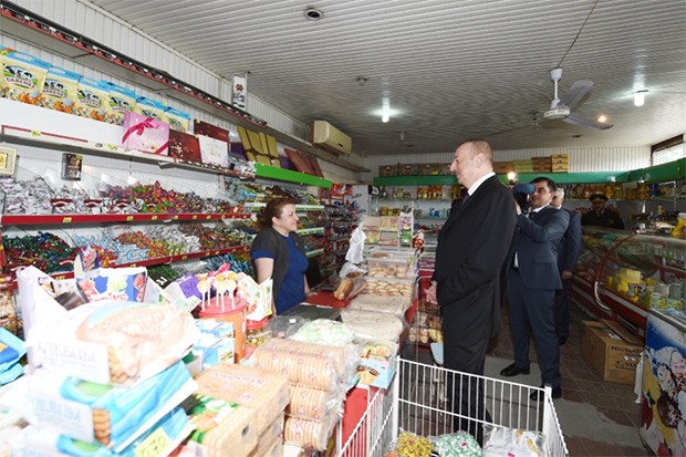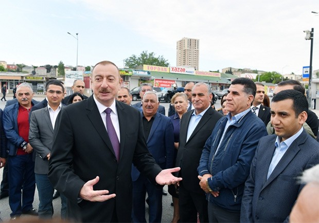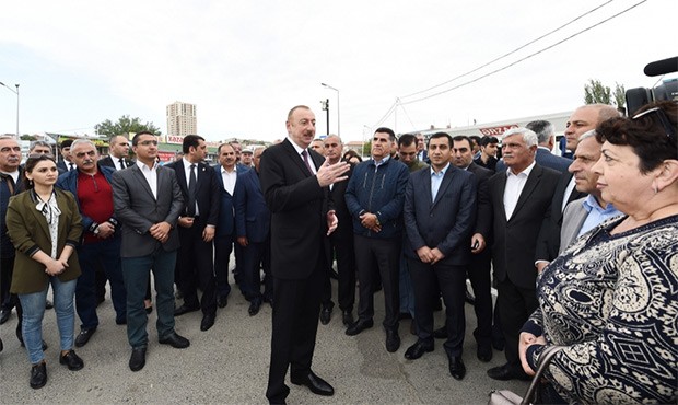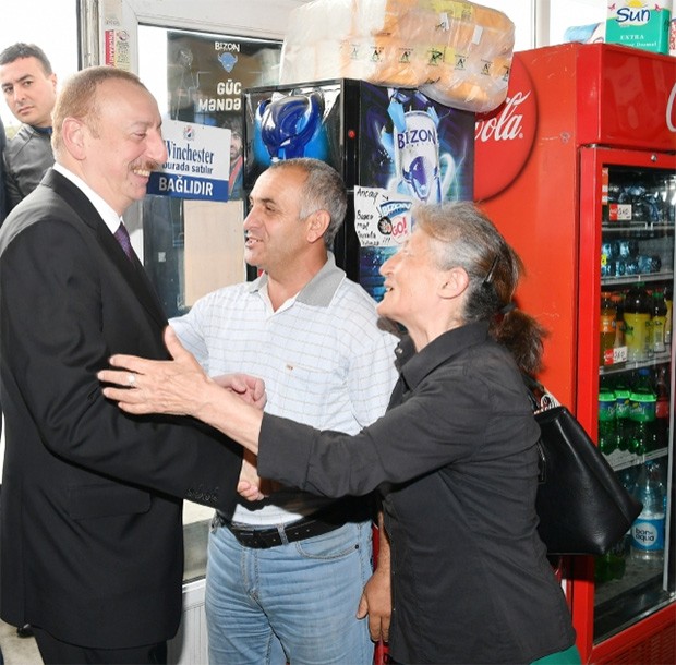 Dövlət başçısı əvvəlcə qəsəbə sakinləri ilə görüşüb söhbət edib.