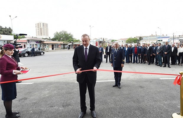 Daha sonra Prezident İlham Əliyev Sabunçu dəmir yolu vağzalının rəmzi açılışını bildirən lenti kəsib.