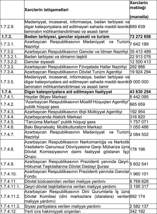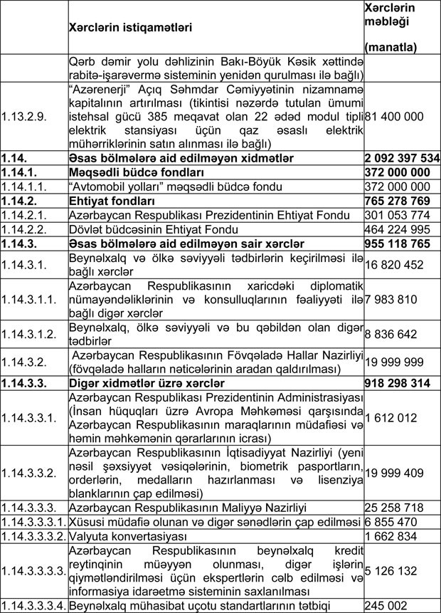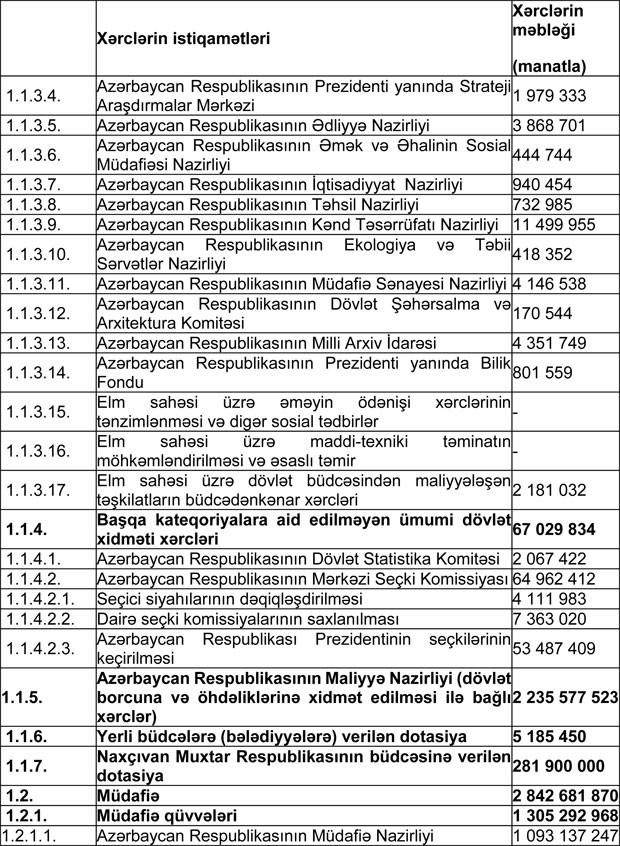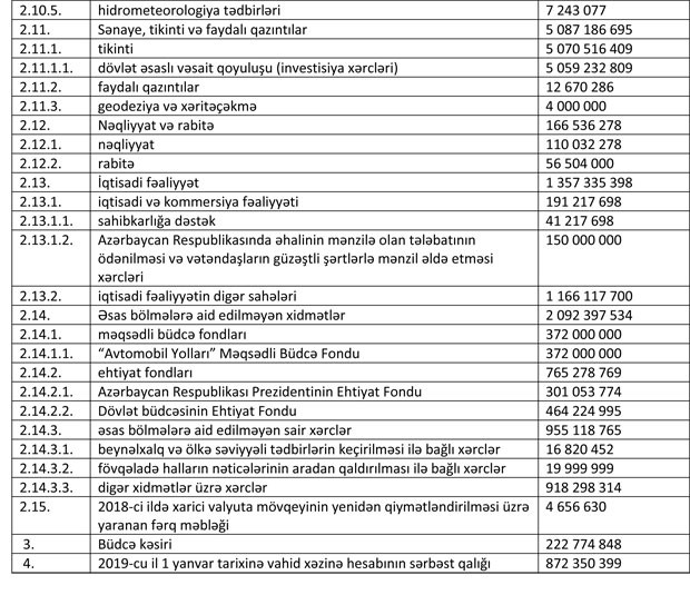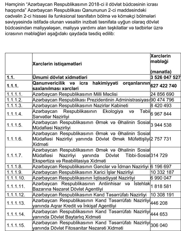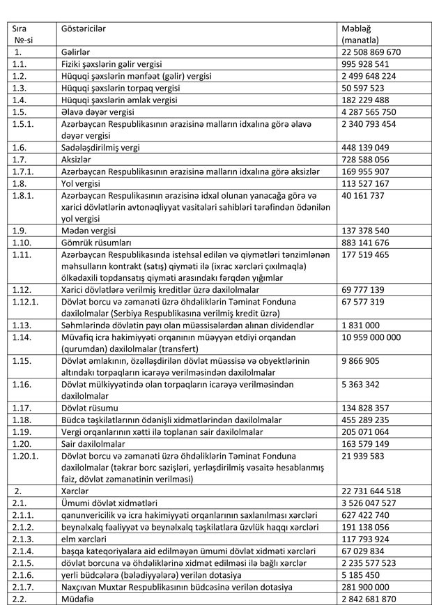 Azərbaycan Respublikasının 2018-ci il dövlət büdcəsinin gəlirlər və xərclər üzrə göstəriciləri aşağıdakı kimi qəbul edilib: