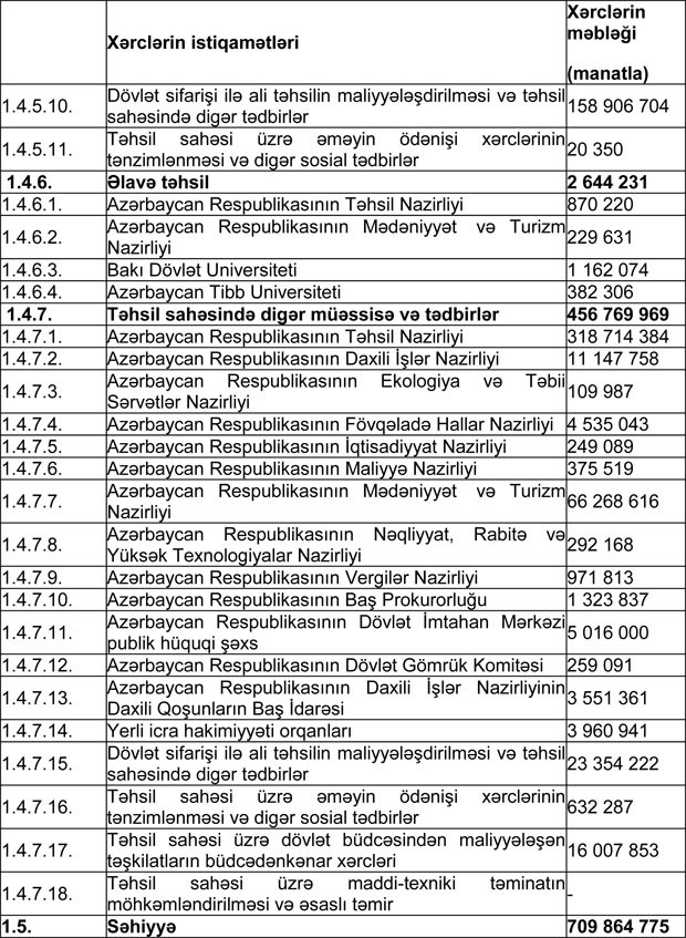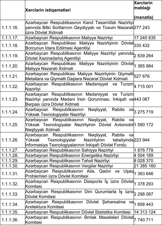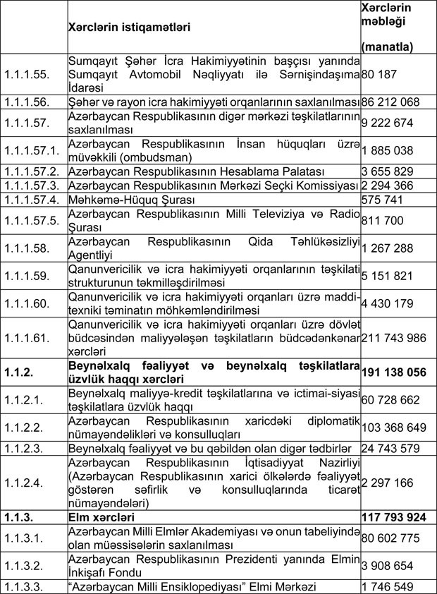 "Marja" xəbər verir ki, qanunda Azərbaycan Respublikasının 2018-ci il dövlət büdcəsinin icrası gəlirlər 22 milyard 508 milyon 869,7 min manat, xərclər 22 milyard 731 milyon 644,5 min manat məbləğində olmaqla təsdiq edilib.