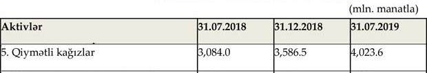 Banklarının qiymətli kağızlara investisiyaları 4 milyard manatı aşıb