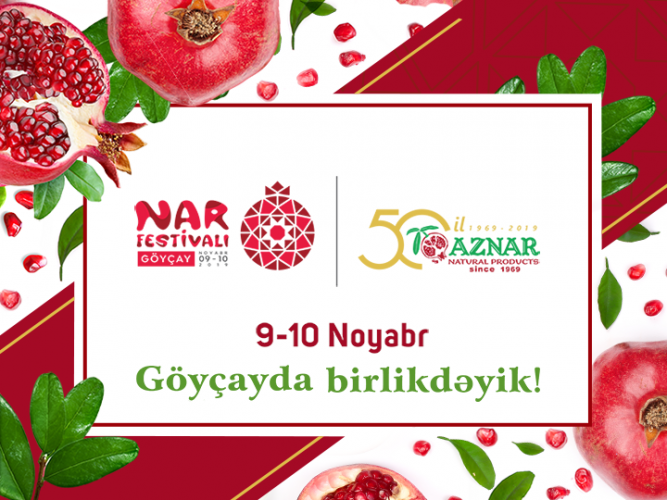 Noyabrın 9-10-da Göyçay Şəhər İcra Hakimiyyətinin dəstəyi, “Aznar” şirkətinin baş sponsorluğu ilə Nar festivalı və “Aznar” şirkətinin 50 illik yubileyi keçiriləcək.