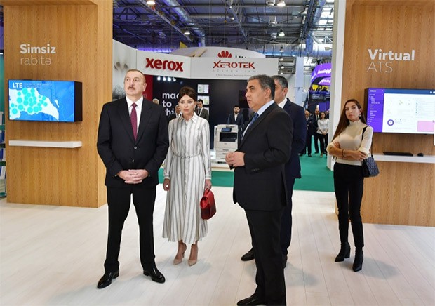 Azərbaycan Respublikasının Prezidenti İlham Əliyev və birinci xanım Mehriban Əliyeva dekabrın 4-də Bakı Ekspo Mərkəzində XXV Azərbaycan Beynəlxalq Telekommunikasiya, İnnovasiya və Yüksək Texnologiyalar Sərgisi – “Bakutel-2019” ilə tanış olublar.