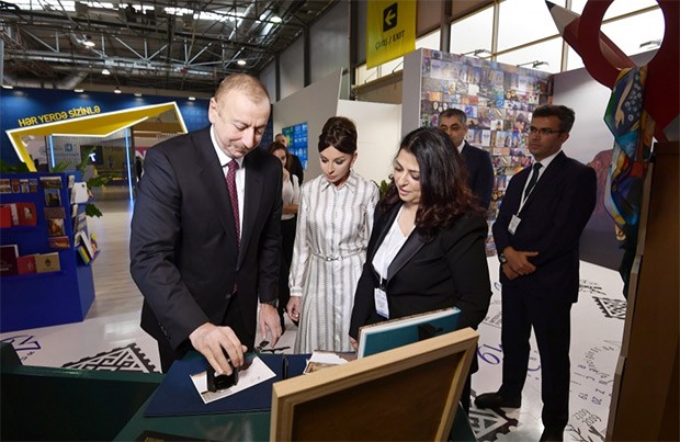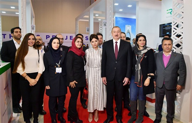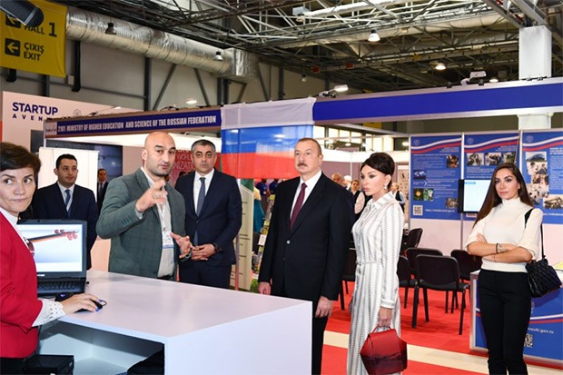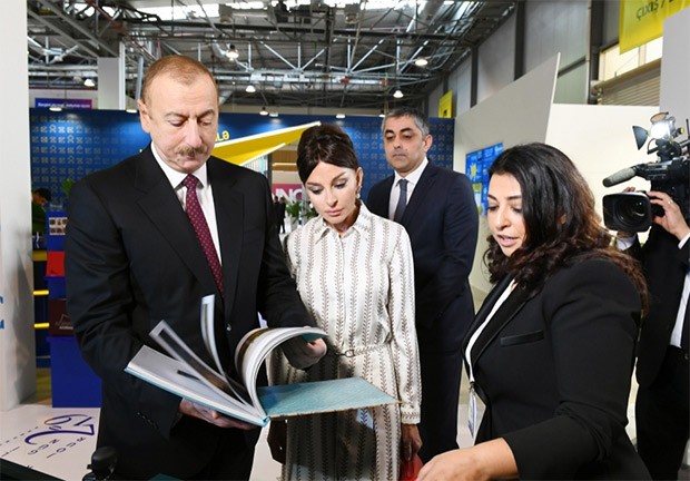 Prezident İlham Əliyev və birinci xanım Mehriban Əliyeva sərgidə nümayiş etdirilən pavilyonlarla tanış olublar.